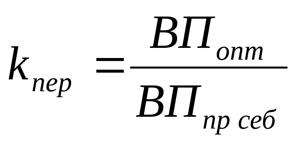 При планировании остатков готовой продукции на начало периода организация не имеет исчерпывающих данных о фактической величине остатков, поэтому в расчёт принимаются ожидаемые остатки нереализованной продукции, которые в учёте организации отражаются по производственной себестоимости. Их стоимость пересчитывается в оптовые цены с помощью коэффициента пересчёта. Для расчётов используются показатели товарной продукции, планируемой к выпуску в IV квартале отчётного года. Коэффициент определяется по формуле