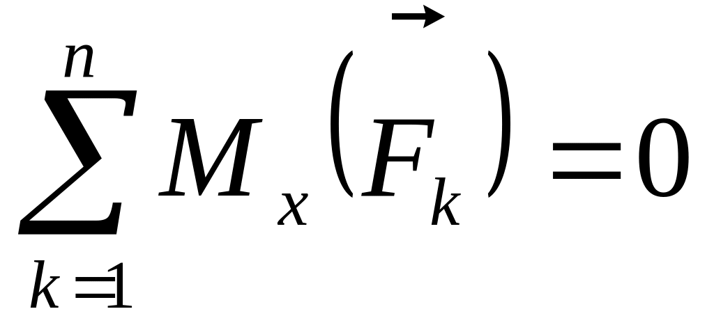 4. Система находится в равновесии, если , , . Таким образом, для равновесия произвольной пространственной системы, сил необходимо и достаточно, чтобы для какого-либо центра приведения О главный вектор и главный момент были равны нулю.