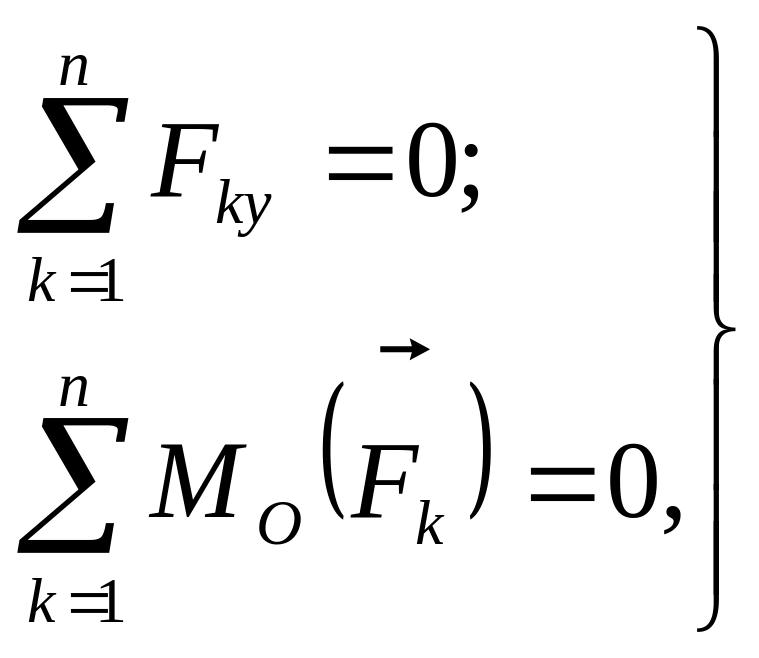 Если все силы, расположенные в плоскости, взаимно параллельны, то число уравнений равновесия сократится до двух. Эти уравнения можно записать в одной из двух форм: