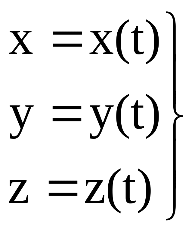 проведенным из начала этой системы О в точке М или тремя координатами x,y,z , которые являются функциями времени t