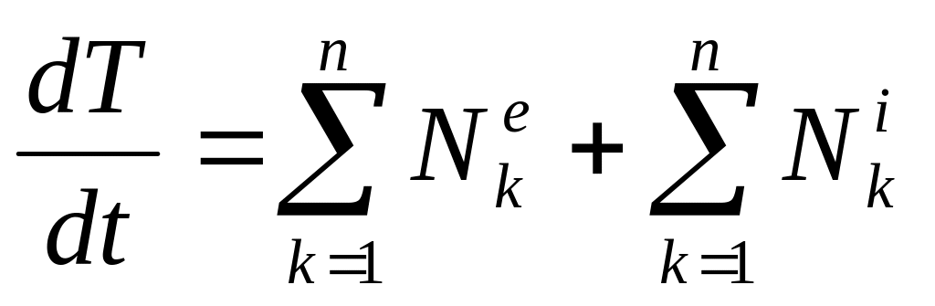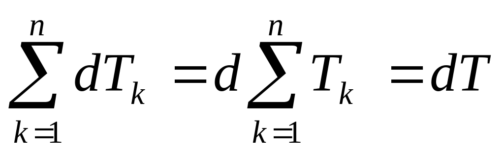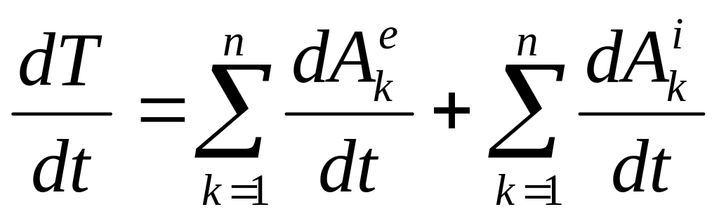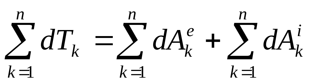 то есть дифференциал кинетической энергии системы равен сумме элементарных работ всех действующих на систему внешних и внутренних сил.