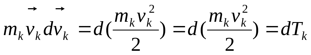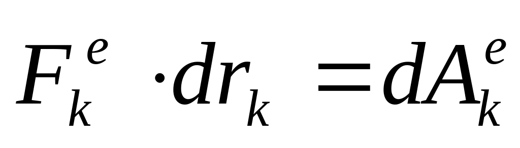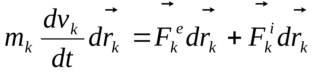 где и — соответственно равнодействующие внешних и внутренних сил системы, приложенных к k-й точке. Умножим скалярно каждое из этих уравнений на элементарное перемещение соответствующей точки: