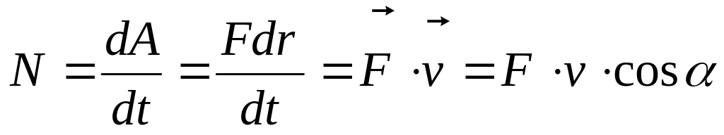 то есть мощность силы — это величина, равная скалярному произведению силы на скорость точки ее приложения. Таким образом, при постоянной мощности увеличение скорости ведет к уменьшению силы и наоборот. Единицей измерения мощности является ватт (1 Вт =1 Дж/с).
