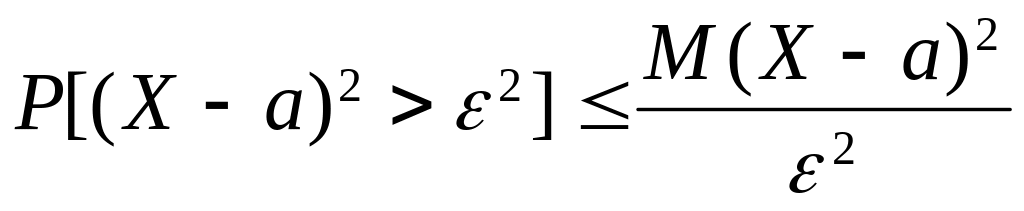 Так как неравенство (X-a)2> ε2 равносильно неравенству │X-a│> ε , а M(X-a)2 есть дисперсия случайной величины Х, то теорема доказана.
