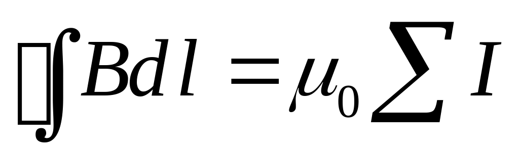 Циркуляция вектора пропорциональна алгебраической сумме токов, охватываемых выбранным контуром.
