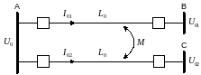 Рис. 59. Схема двухцепной ВЛ обладающей взаимоиндукцией