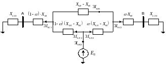Здесь α – характеризует расстояние от подстанции В до точки КЗ в долях от общей длины линии. Схема замещения нулевой последовательности для этого режима показана на рис.63.