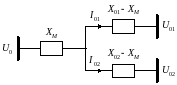 Рис. 61. Схема замещения двухцепной ВЛ с взаимоиндукцией в сквозном режиме