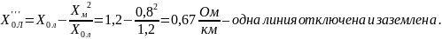 Поделив на ток, протекающий по ВЛ, находим сопротивление нулевой последовательности линии в ремонтном режиме: