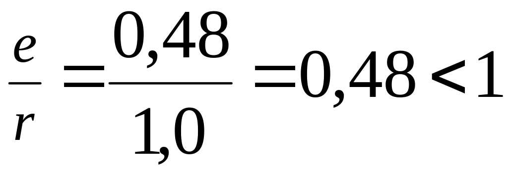 Для оснований из нескальных грунтов под фундаментами мелкого заложения, рассчитываемыми без учёта заделки в грунт, должно быть проверено положение равнодействующей нагрузок по отношению к центру тяжести площади подошвы фундамента. При этом точка приложения равнодействующей не должна выходить за пределы ядра сечения подошвы фундамента r.
