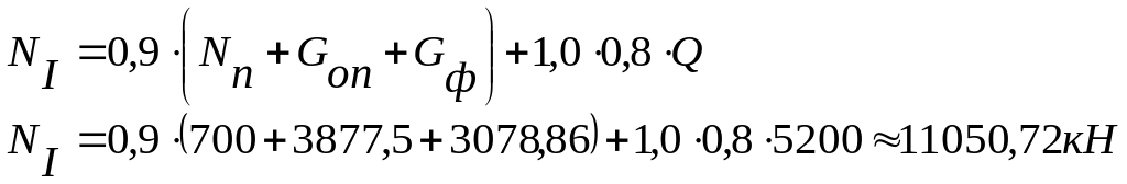 Расчётные нагрузки, приведённые к центру тяжести подошвы при проверке несущей способности основания: