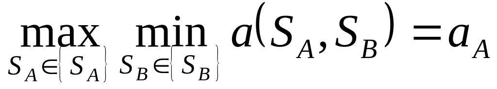 Следовательно минимаксной стратегией А является , а для В - . Это решение будет наилучшим, если стороны делают только один ход. Если ход не один, и имеется полная информация о прошлом, то каждая сторона, изменяя свои стратегии, может добиться преимущества. В результате каждый ход станет проблематичным и потребует разработки специальных правил. Решение в чистых стратегиях оказывается неустойчивым, в связи с хорошей информированностью сторон о действиях друг друга. Поэтому необходимо как-то скрыть своё поведение от противника, чтобы ослабить влияние информации и получить преимущество. Это достигается путём введения элемента случайности. При этом каждый отдельный ход остаётся непредсказуемым, но вся совокупность ходов обладает определёнными, заранее заданными свойствами. Участники игры просто чередуют свои стратегии в соответствии с разработанной схемой, обеспечивающей нужную вероятность реализации каждой стратегии.