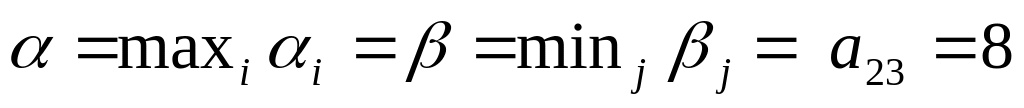 Самым простым, но редко встречающимся, является случай, когда нижняя цена игры совпадает с верхней, то есть =. Примером может служить следующая матрица (табл.7.2).