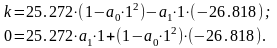 С применением пакета MathCad определяем решение системы уравнений при w1= 1 с-1 и w3= 10 с-1 относительно k, а0, а1:
