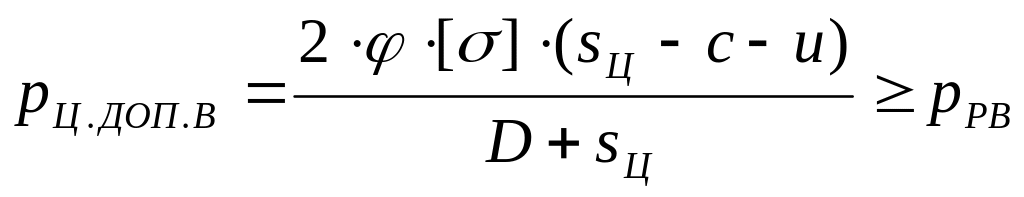 Допускаемое внутреннее давление для цилиндрической обечайки определяется по формуле: