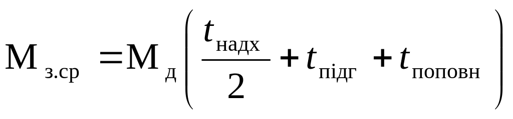 tнадх — інтервал надходження чергової партії матеріалів у днях;