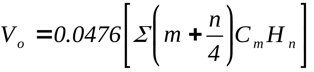 2) Определяется объем продуктов сгорания природного газа, образующихся при сжигании 1 м3 газа по формулам, м3: