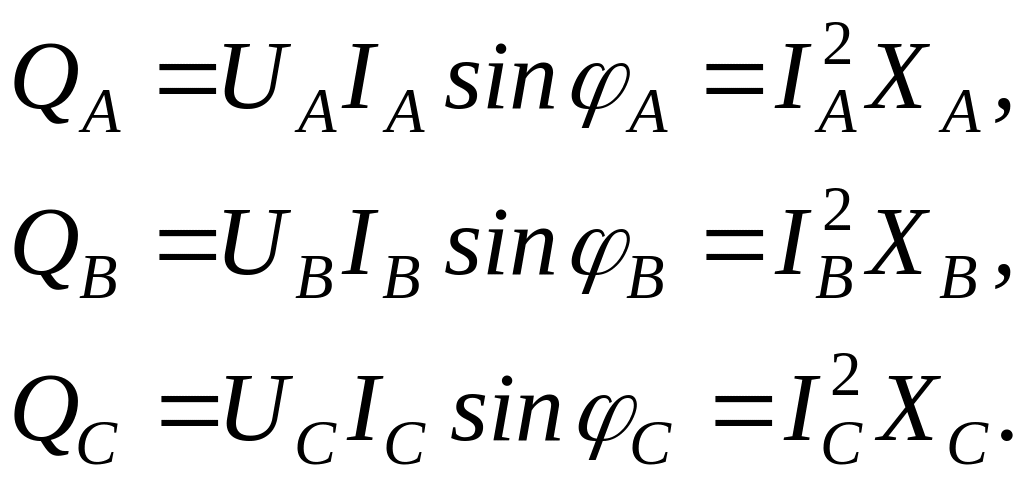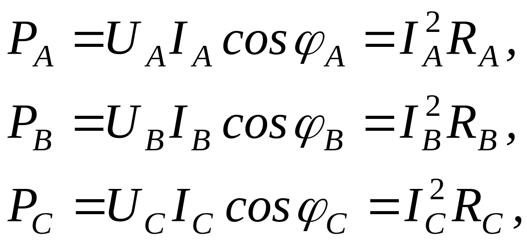 Расчеты при несимметричной нагрузке производятся по приведенным выше соотношениям для каждой фазы отдельно.