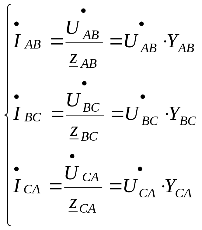 Сами комплексы фазных токов рассчитываются по закону Ома: