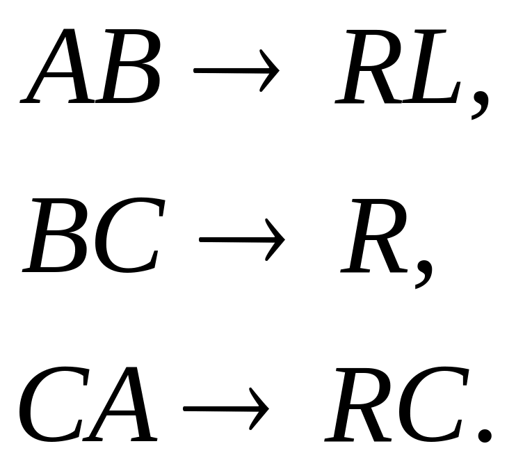 При соединении фаз источника и приемника треугольником начало одной фазы соединяется с концом последующей.