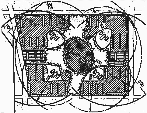 У кварталі не завжди розміщують всі перераховані зони. Орієнтовна схема функціонального зонування мікрорайону приведена на мал. 5.1.