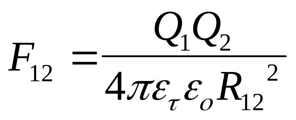 За законом Кулона визначається сила взаємодії електричних зарядів часток F12 у ньютонах