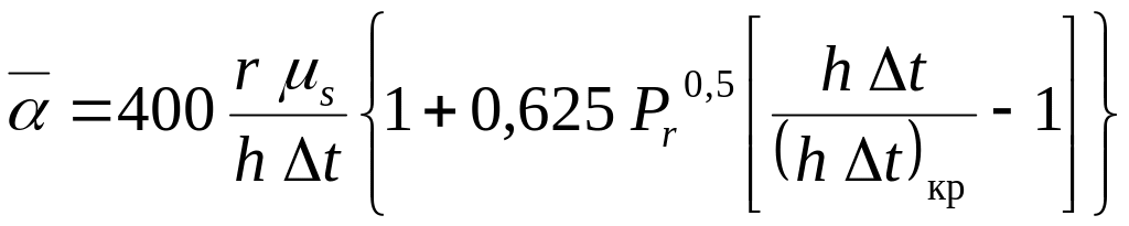 Для турбулентного режима течения плёнки конденсата на вертикальной поверхности стенки значение среднего по поверхности коэффициента теплоотдачи определяется по формуле