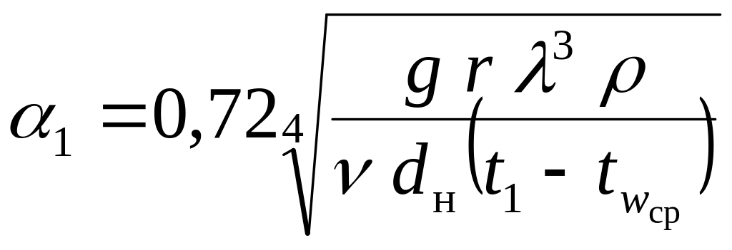 При конденсации водяного пара на горизонтальных трубных пучках, обтекаемых сверху вниз чистым водяным паром, средние значения коэффициентов теплоотдачи можно определить по формуле