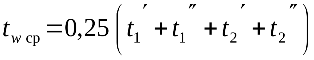 Определяющая температура для воды в трубках и межтрубном пространстве находится как среднее арифметическое между значениями температур на входе и выходе из теплообменного аппарата.