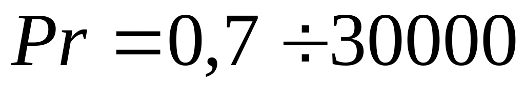 5∙102÷2∙107 (ламинарный режим) |