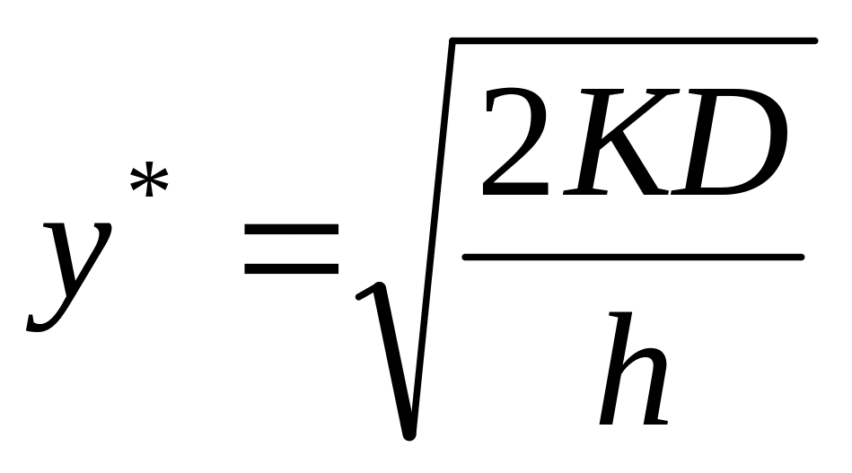 Оптимальная стратегия модели предусматривает заказ у* единиц продукции через каждые t0*=y*/D единиц времени.