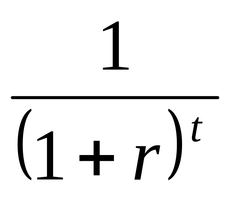 4. Приведення майбутніх грошових потоків від інвестицій до їхньої теперішньої вартості (дисконтування). Оскільки грошові кошти під впливом фактору часу знецінюються, вартість теперішніх грошей (тобто їх купівельна спроможність) перевищує вартість грошей, що будуть отримані в майбутньому. Такий вплив часу на вартість грошей ураховується шляхом дисконтування майбутніх грошових коштів. Дисконтування передбачає коригування майбутніх потоків грошей на коефіцієнт, який відповідає певній дисконтній ставці, що враховує ризик і непевність, пов'язані з фактором часу. В умовах очікування постійного річного темпу інфляції застосовують постійну річну ставку дисконту і теперішню вартість отриманих у майбутньому грошових потоків обчислюють за формулою;