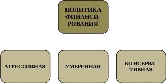 Однако на практике часто происходит отклонение от указанного правила финансирования в ту или иную сторону. Это связано прежде всего с целями каждой фирмы и проводимой ей финансовой политикой. В зависимости от применения этого правила существуют несколько видов политики финансирования: