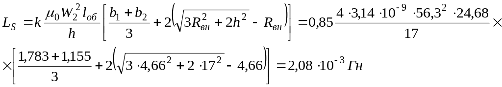 Индуктивность трансформатора с обмотками на разных стержнях вычисляем по формуле: