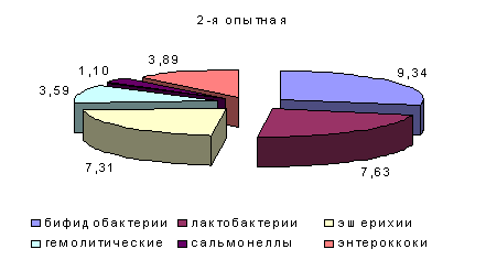 Рис. 6. Процентное соотношение микрофлоры в химусе слепых отростков через 15 суток после выздоровления.