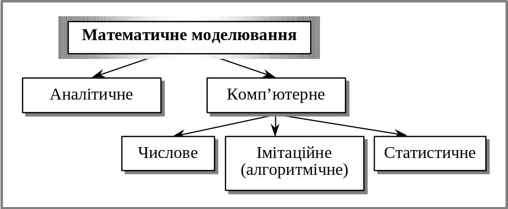 Класифікація видів математичних моделей може проводитися й за такими ознаками: аналітичне та комп’ютерне моделювання (рис. 2.1).