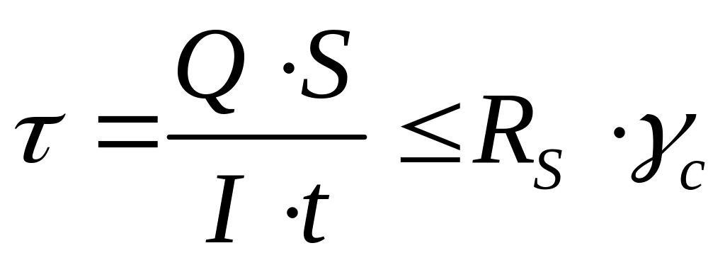 Значения касательных напряжений «τ» в сечениях изгибаемых элементов должны удовлетворять условию: