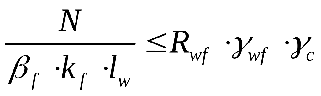 и - расчетные сопротивления срезу по границе сплавления и металлу шва соответственно.