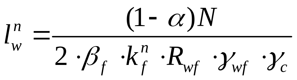 где α – коэффициент для равнополочных уголков равный 0,7. Для неравнополочных уголков прикрепленных малой полкой α=0,65, прикрепленных большой полкой – α=0,75.