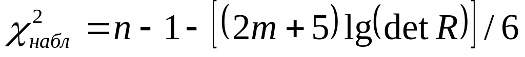 Таким образом, чем ближе к нулю detR, тем сильнее мультиколлинеарность. Вывод о наличии мультиколлинеарности делается по результатам проверки нулевой гипотезы Н0 : det R = 1, при альтернативной гипотезе Н1 : det R = 0.