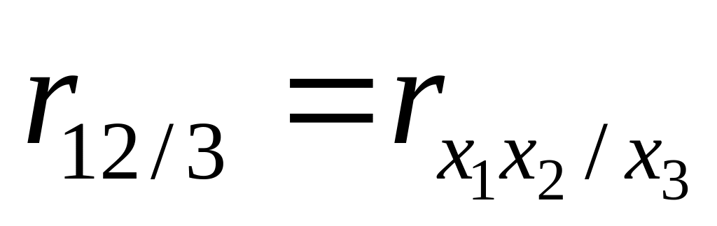 Частные коэффициенты корреляции – это коэффициенты корреляции между двумя факторами, «очищенные» от влияния других факторов. Например для трех факторов Х1, Х2, Х3 частный коэффициент корреляции для Х1, Х2 будет: