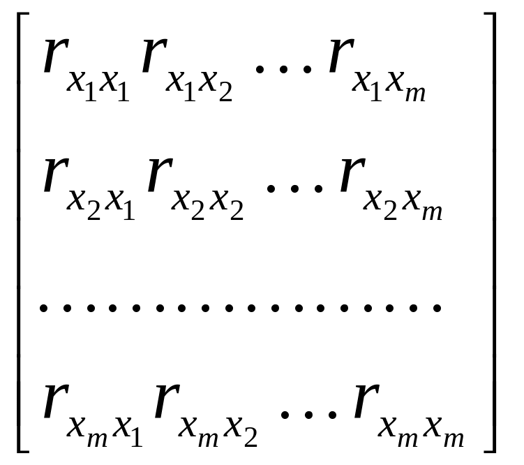 Частные коэффициенты корреляции могут быть использованы для определения «чистого» влияния Хj на Y и ранжирования таким образом зависимости Хj на результат. Для этого составляется расширенная матрица частных коэффициентов: