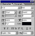 Любые типы текста (редактируемый и др.) создаются с помощью инструмента Туре(Текст), меню Layer (Слои), палитры Character (Шрифт), показанной на рис. 1.3, палитрыParagraph (Абзац) и панели опций (рис. 1.4).
