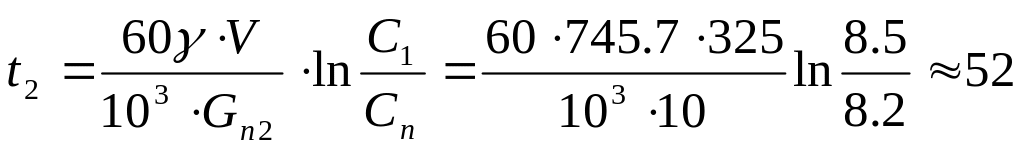 Из (23.3.1-б) следует, что время снижения концентрации борной кислоты в контуре от стояночного (Сст) до произвольного значения С1 должно составить