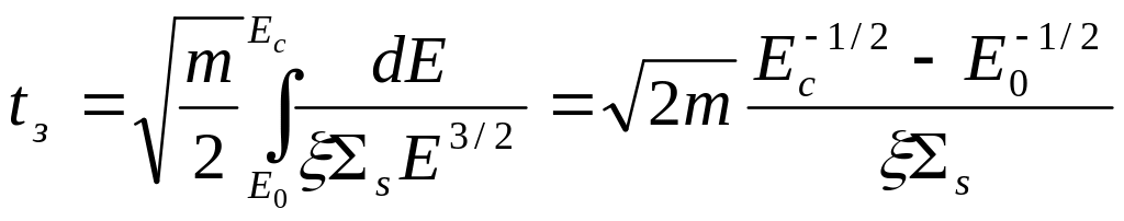 С другой стороны, нейтрон за время dt замедляется в элементарном интервале энергий dE ниже энергии Е, и то же число рассеяний можно выразить как dE/E. Приравнивая эти величины, имеем: