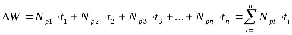 Если реактор работает на разных постоянных уровнях мощности (Npi) различные отрезки времени (ti) (профессионалы говорят: работает в “рваном ритме”), то приращение величины энерговыработки, очевидно, составит: