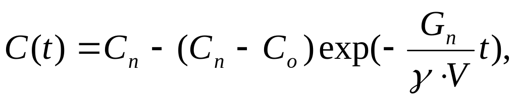 то есть изменение концентрации борной кислоты в I контуре в самом общем случае водообмена происходит во времени по экспоненциальному закону.