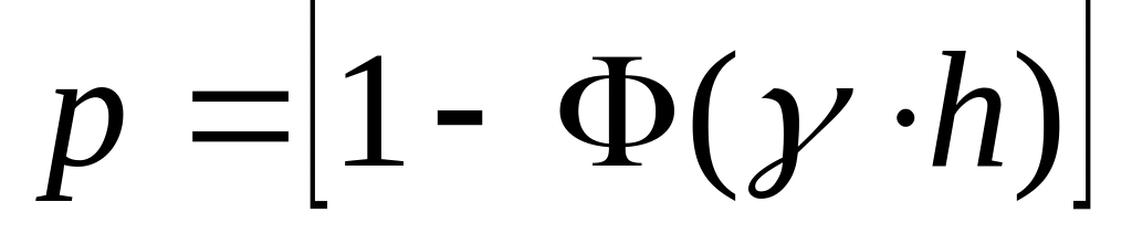 После нахождения значения h, по специальным таблицам находим вероятность ошибки, которую необходимо найти по заданию, при этом используем формулу (2.1). Откуда находим, что p = 0,007.