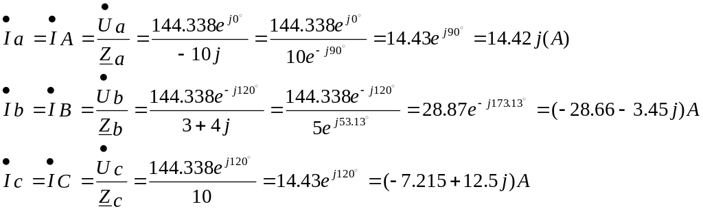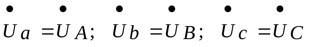 Для визначення лінійних струмів скористаємося першим законом Кірхгофа для вузлів а, b, c: