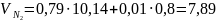 O2=100·Z0·α·ρ·0,21= =100·10,14·1·1,429·0,21 N2=100·Z0·α·ρ·0,79= =100·10,14·1·1,251·0,79 H2O=d ·Z0· ρ·0,16= =10·10,14·0,804·0,16 |